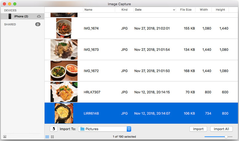 最後但並非最不重要的一點是,將視頻和照片從 iPhone 複製到 Mac 的最後一種方法是通過圖像捕捉。該應用程序基本上是為從掃描儀和數碼相機上傳媒體文件和照片而設計的。它還可以控制將 iPhone 連接到 Mac 時的一切。