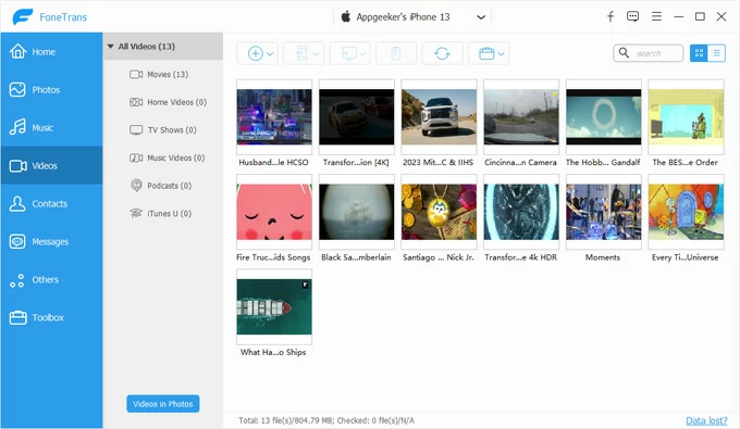 擺脫iTunes過時的操作。對於那些希望將視頻從PC傳輸到iPhone的照片庫或想要批量傳輸大量視頻文件到iPhone而不丟失當前數據的人,iPhone數據傳輸是最佳選擇。該軟件可以在計算機和 iPhone 之間傳輸各種媒體文件,包括照片、視頻、音樂、短信等。