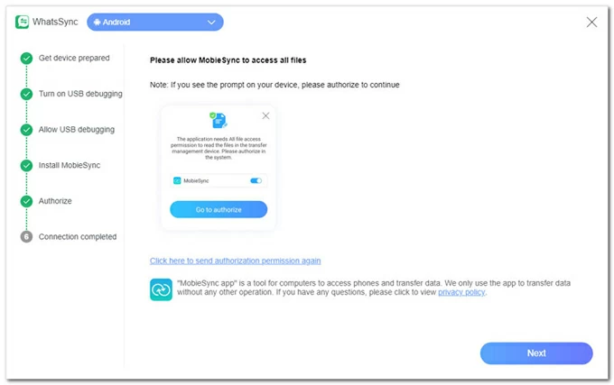 憑藉其直觀的一鍵式界面,即使是初學者也可以在幾分鐘內完成 WhatsApp 傳輸,無需技術知識。以下是從 Android 17 轉移 WhatsApp 的快速步驟,無需恢復出廠設置或數據丟失: