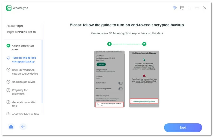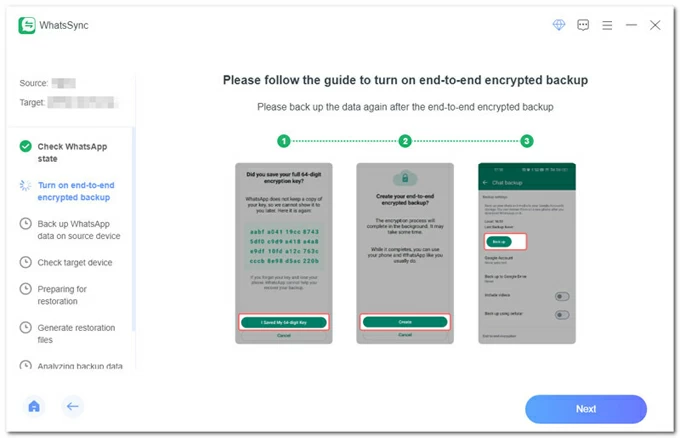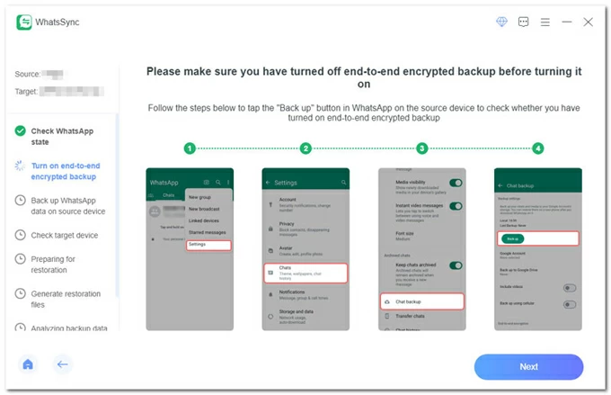 步驟 2. 將 WhatsApp 聊天從 Android 轉移到 iPhone 17。
