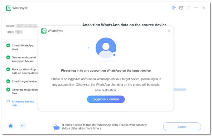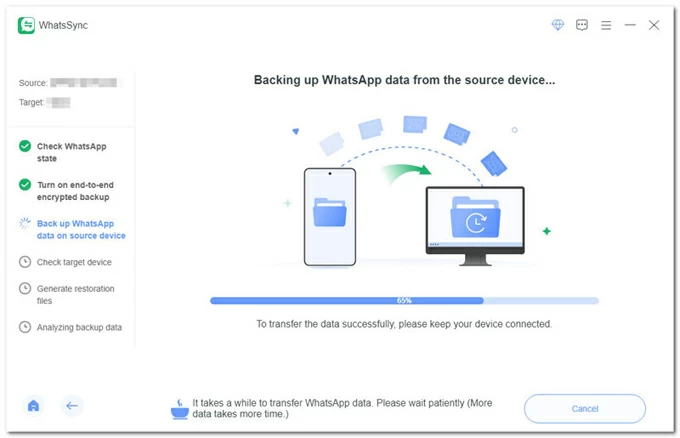 步驟 4. 將 WhatsApp 數據從 Android 傳輸到 iPhone 17。