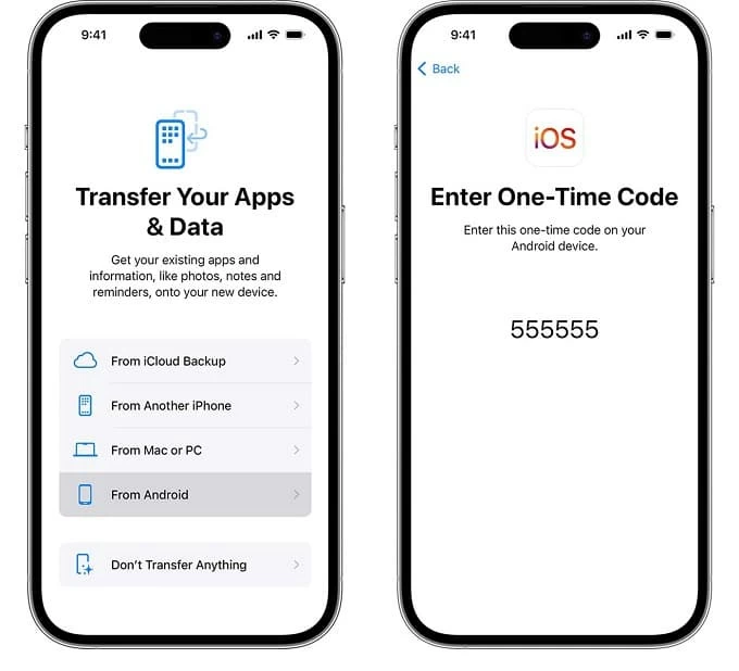 步驟 3. 在 Android 上設置“移動到 iOS”並將其與您的 iPhone 配對
