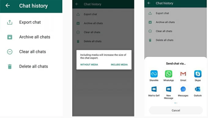 WhatsApp 的內置導出聊天功能可讓您直接從 Android 設備提取個人聊天內容並通過電子郵件發送到 iPhone 17,無需使用 PC。這種方法既快捷又方便,特別是如果您只想保留一些重要的對話。