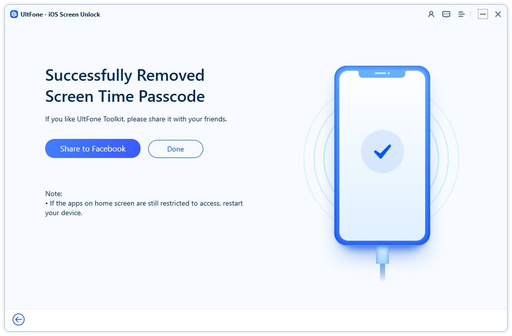 單擊“開始刪除”,讓程序發揮它的魔力!只需幾秒鐘,您的 iOS 17 屏幕時間密碼就會被刪除,而不會丟失任何數據。