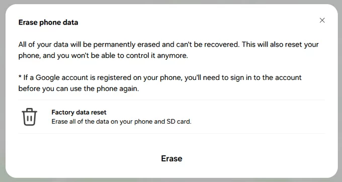 與 Apple 設備一樣,運行 Android 的平板電腦即使在忘記屏幕鎖定密碼的情況下也可以隨時遠程清除自身數據。 Google 附帶了 Find Hub 功能,只要您登錄 Google 帳戶,該功能就會自動打開。您將能夠登錄 Google Find Hub 網站或應用程序,並使用其中的“恢復出廠設置設備”工具在平板電腦上完成恢復出廠設置。