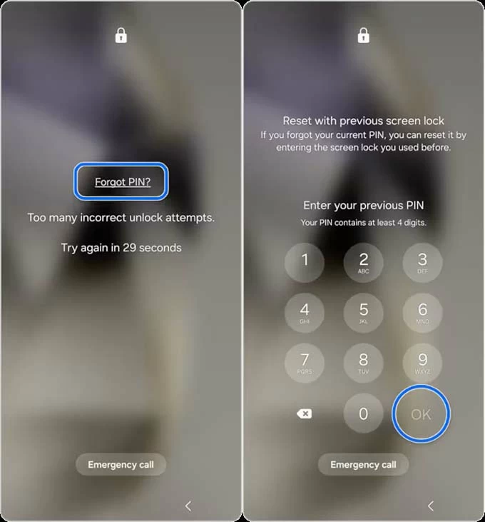 這是一種保留數據的解鎖方法。它之所以有效,是因為在您切換到新的鎖定憑證後,系統會暫時存儲您之前的鎖定憑證 72 小時。如果您記得舊密碼、PIN 碼或圖案,此方法會立即恢復訪問權限。