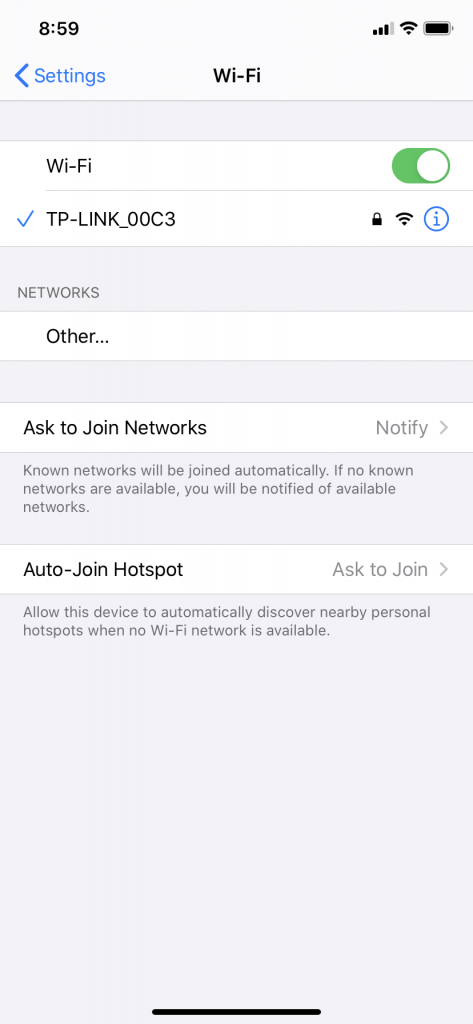 您始終可以確定您的手機或平板電腦是否連接到 Wi-Fi 的方法是訪問設定,然後點擊無線上網。 Wi-Fi 旁邊的開關應該位於在位置,並且您正在使用的網絡名稱旁邊應該有一個藍色複選標記。