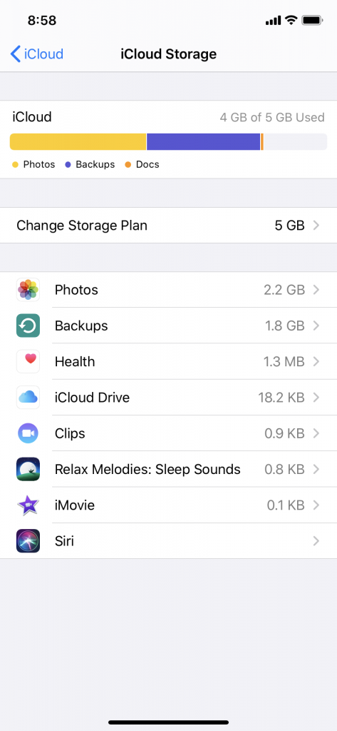 請記住,鏈接到一個 iCloud 帳戶的所有設備都共享存儲空間。例如,如果您有兩台 Apple 設備,則您不會獲得雙倍的空間。