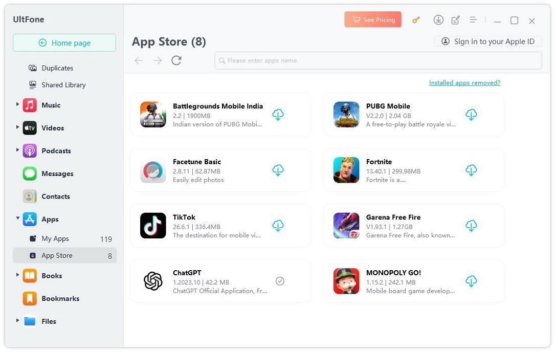 如果您想下載 App Store 中提供但您所在地區明確禁止的應用程序(例如印度的 TikTok),您可以使用 UltFone iOS 數據管理器下載您所在國家/地區不可用的應用程序。一些史詩般的遊戲,如 BGMI 和 Fortnite 也可以使用 UltFone iOS 數據管理器下載。這是它的工作原理。