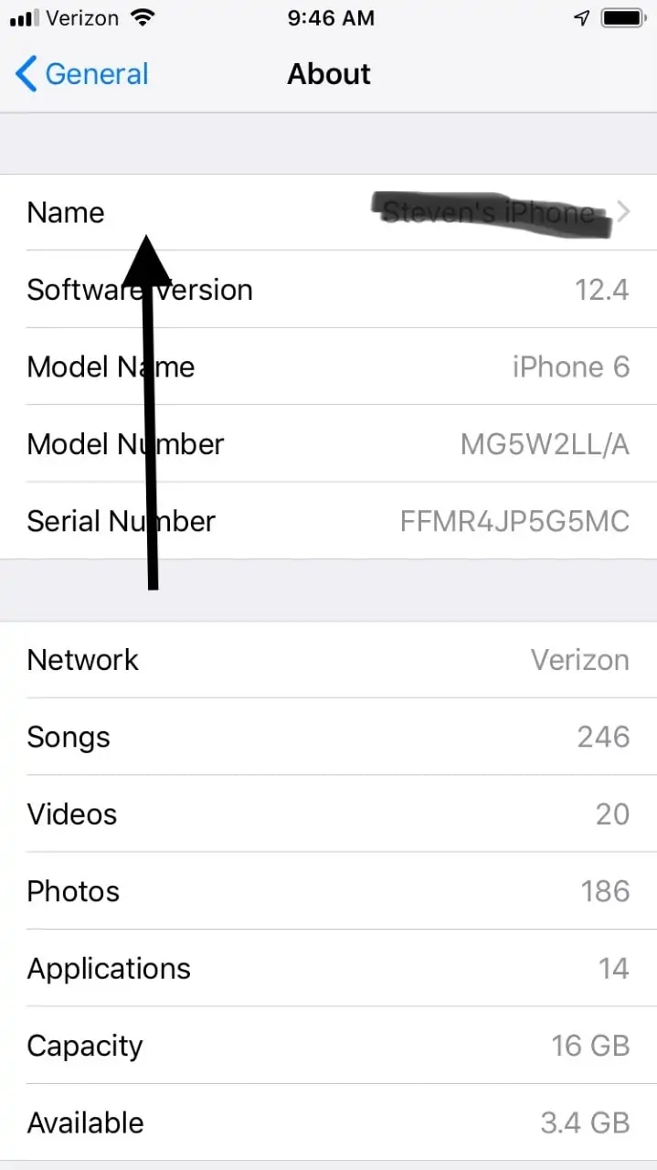 例如,您可能還會更改iPhone的名稱,例如,它在其他藍牙系統(例如汽車的娛樂中心)中出現的位置。為此,前往設定, 然後一般的和關於。選擇要自定義的名稱。這可能使您的車輛娛樂系統更容易拿起iPhone。