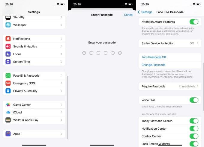 3. 點擊更改密碼開始。或者你可以去設定>面部識別碼和密碼,然後輸入您的密碼並選擇更改密碼選項。