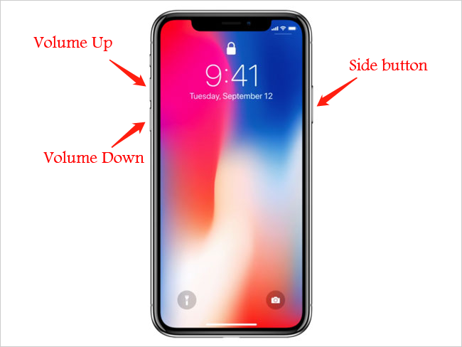 - 對於iPhone 8或更高版本:按並釋放“音量上升”按鈕,然後快速按並釋放“音量下降”按鈕。最後,按並按住“電源”按鈕,直到出現Apple徽標。