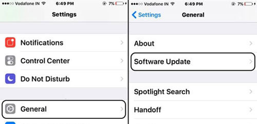 – 更新iOS版本。除了iTunes檢查之外,您還應該檢查iPhone的版本。只需導航至“設置”>“常規”>“軟件更新”。如果有新的 iOS 版本,它會提示您,您需要做的就是按照說明獲取最新的 iOS 版本。