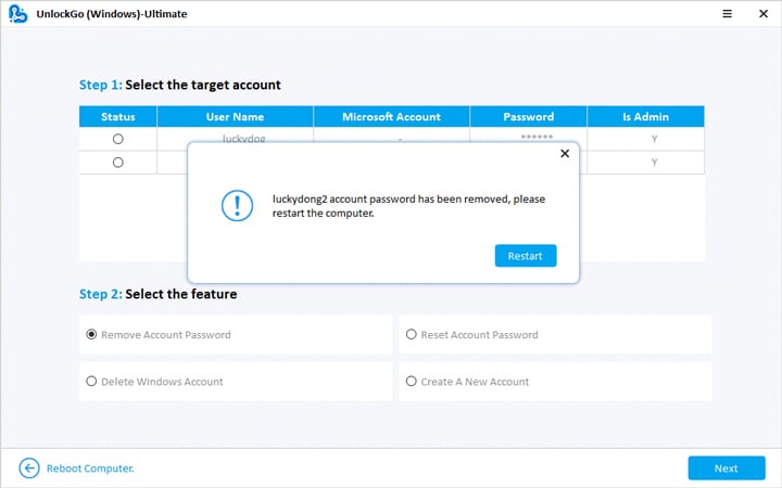 4. Unlockgo for Windows 允許您刪除您的 Windows 帳戶