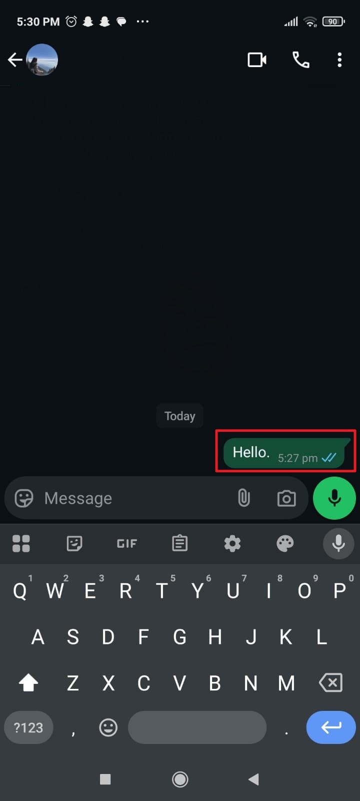 對於“我如何知道某人是否在線使用 WhatsApp”,已讀回執(藍色勾號)可以作為很好的指標。如果收件人閱讀了您的消息,刻度線會立即變成藍色,表明他們有可能在線。當某人的“在線”狀態被隱藏或當您想要仔細檢查他們的活動時,此方法更有效。只需向您的目標發送一條消息,然後檢查刻度線何時變為藍色。