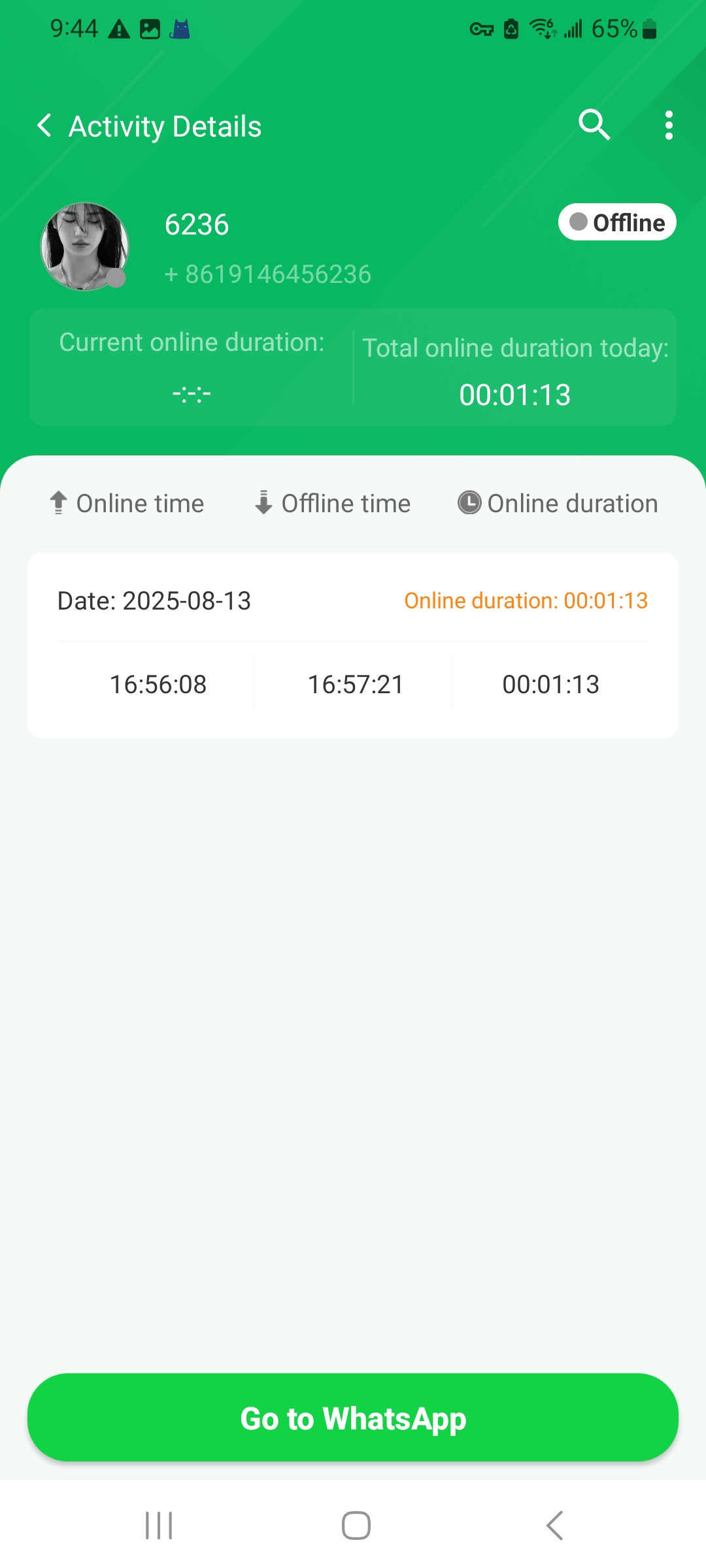 連接後,按您之前輸入的目標聯繫人的“活動”按鈕。這樣做,您將看到他們上次看到的活動的詳細視圖以及在線和離線時間。