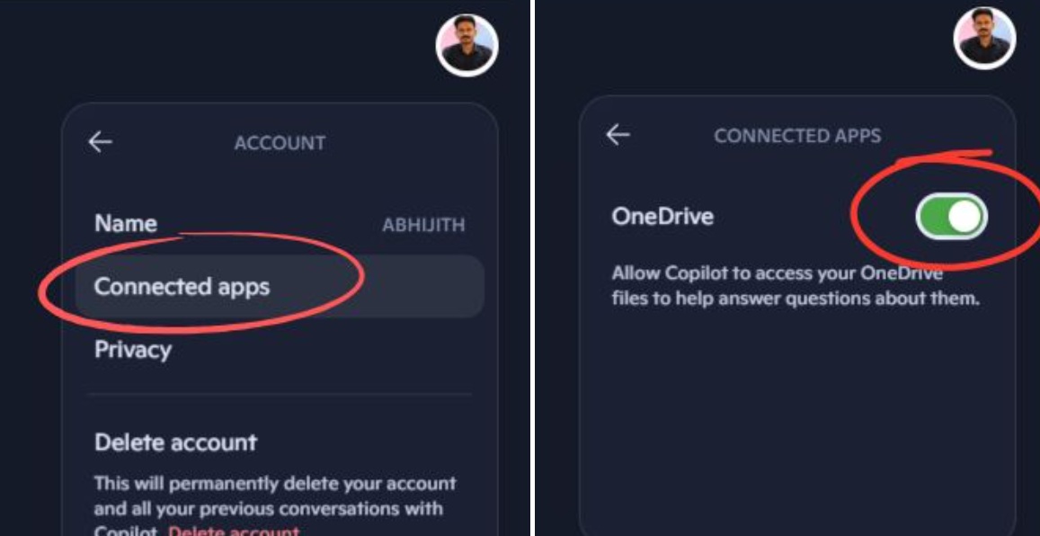 微軟僅添加了對 OneDrive 的支持,而且該選項也並非在所有帳戶中都可用。我正在使用免費的 Copilot,並且我確實看到了 OneDrive。