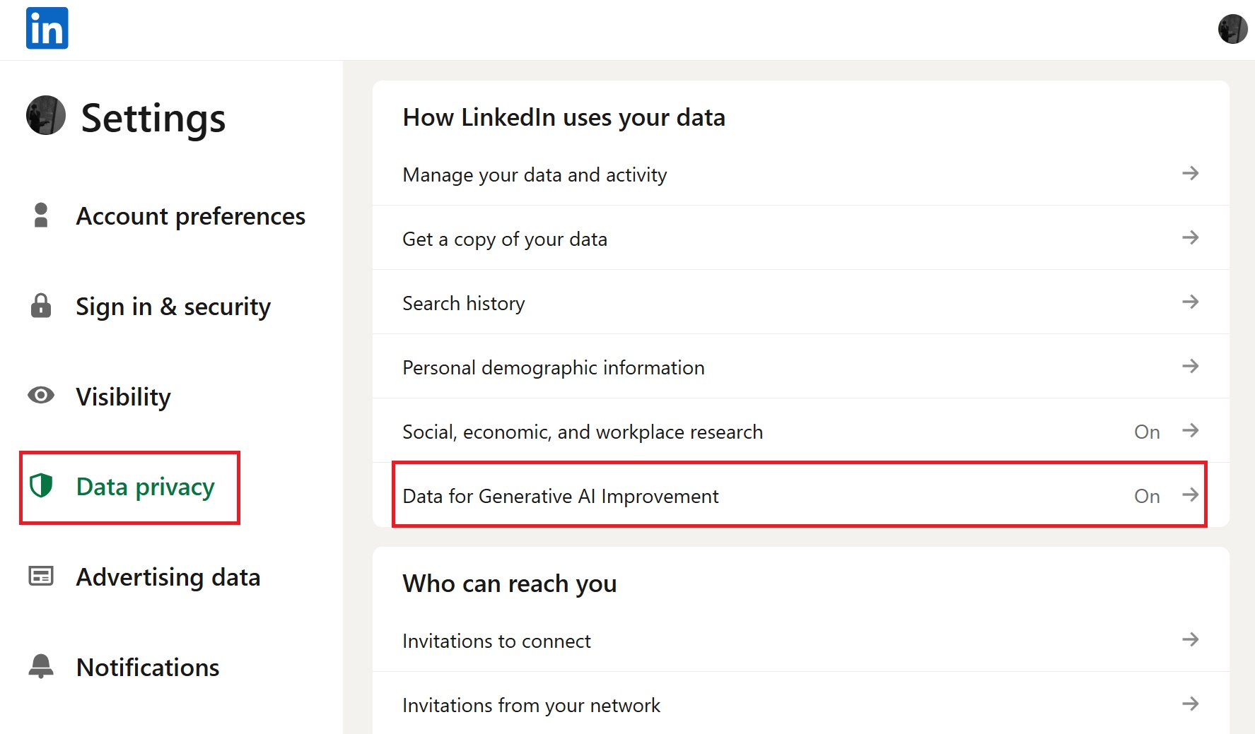 微軟旗下的 LinkedIn 將通過悄悄地根據您的數據訓練人工智能模型來改進人工智能相關功能,包括其算法。 LinkedIn 在一封新電子郵件中警告其會員。您可以通過關閉下面的“功能”來阻止 LinkedIn 對您的數據進行 AI 訓練設定>數據隱私>用於生成式人工智能改進的數據。