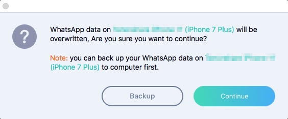 步驟2將會出現一個彈出窗口,請求您允許使用 Android 設備中的新數據覆蓋 iPhone 中所有現有的 WhatsApp 數據。