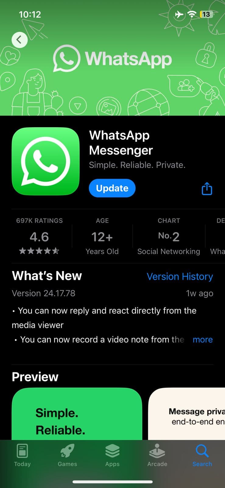 過時的應用程序版本可能缺乏 Meta AI 正常運行所需的兼容性。您所要做的就是訪問您設備各自的應用程序商店並確保 WhatsApp 應用程序是最新的。
