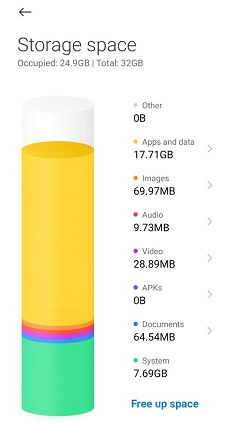 為此:轉到“設置”->“存儲”,如果您發現存儲空間減少,請檢查可用空間;最佳做法是刪除不必要的應用程序。