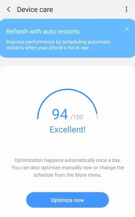 下一個修復可能是關閉所有後台應用程序。然後進入“設置”->“設備維護”->“立即優化”。這將關閉所有後台應用程序並優化這些設置。