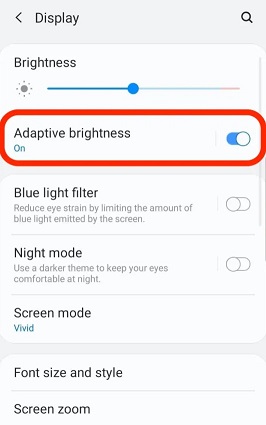 內置的自動亮度變化通常是手機亮度自行下降的原因。在某些平板電腦上,它稱為“自適應亮度”、“自動調整”、“自動亮度”或“自動調暗”。轉到設備的“設置”並檢查“顯示”選項以查看它是否可用。如果已激活則將其禁用。