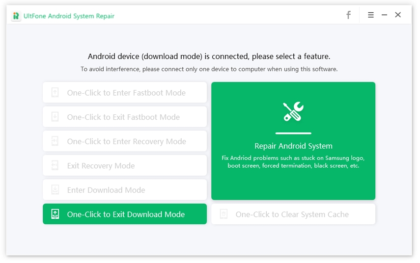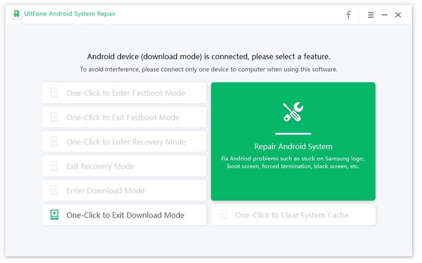 當您的 Android 手機卡在下載模式時,請立即嘗試 UltFone Android 系統修復。它提供了一項免費功能,只需單擊一下即可退出下載模式。