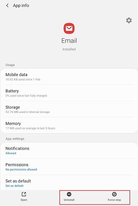 如果您最近在出現此行為之前安裝了任何應用程序,這些應用程序可能是三星平板電腦自動旋轉問題背後的原因。最好的方法是通過“設置”->“應用程序”來卸載此類應用程序,然後選擇要刪除的應用程序。最後,單擊“卸載”。