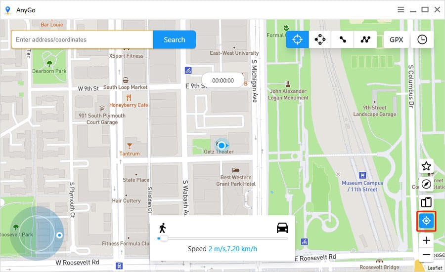 單擊去卡上的按鈕來定位假位置。您將被重定向到地圖上的新虛擬位置。您可以使用多點模式,在地圖上設置多個位置圖釘,然後根據需要修改行走速度。