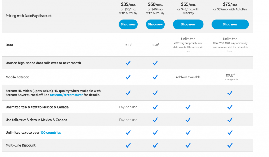 AT&T 有預付費和合同計劃。與其他主要運營商一樣,他們也有大量不同的計劃和方式供您定制一切。我們將重點關注他們的預付費計劃。