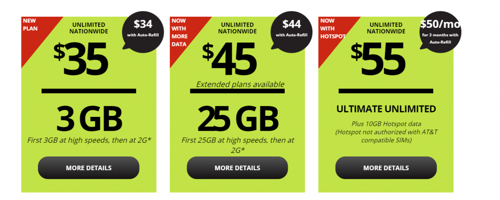 Straight Talk 就是簡單。他們提供三種主要計劃,每月 35 至 55 美元不等。不要對“無限”這個詞感到困惑。他們的無限計劃是以 4G LTE 速度分配數據,然後在用完後減慢至 2G。實際上它仍然是無限的,但是當你的互聯網速度非常慢時,祝你好運。