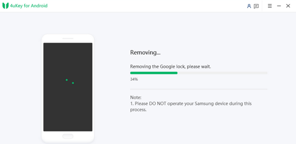 6:該軟件現在將開始解除 Google 帳戶鎖定。完成後,您的設備將可以不受 FRP 限制地訪問。