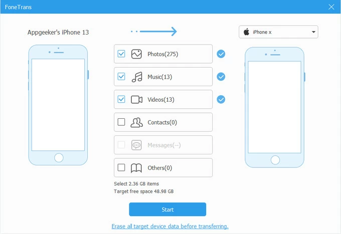 即使您已經設置並個性化了新的 iPhone 17,專用的 Appgeeker iPhone 數據傳輸工具也可以讓您將內容從以前的設備傳輸到新的 iPhone 17,而無需強制恢復出廠設置。