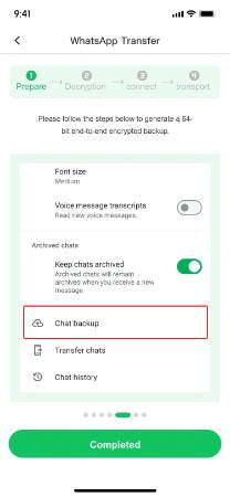 步驟2接下來,在 Android 上創建 WhatsApp 的完整備份,並小心保存 64 位密鑰。