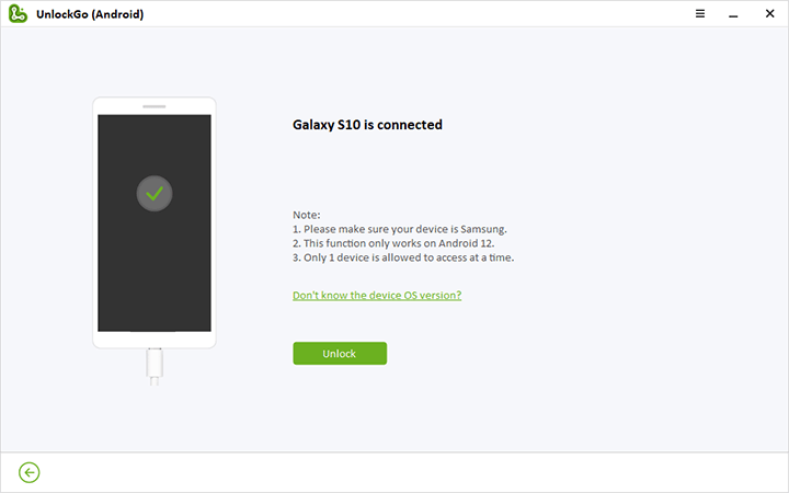 對於某些三星型號,UnlockGo (Android) 允許您解鎖手機,無需硬重置步驟。