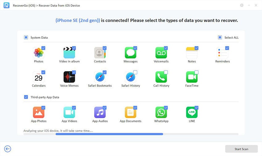 恢復已刪除的 Safari 歷史記錄的最有效方法似乎是使用 RecoverGo (iOS)。它執行快速掃描,允許您選擇想要恢復的瀏覽器歷史記錄類型。