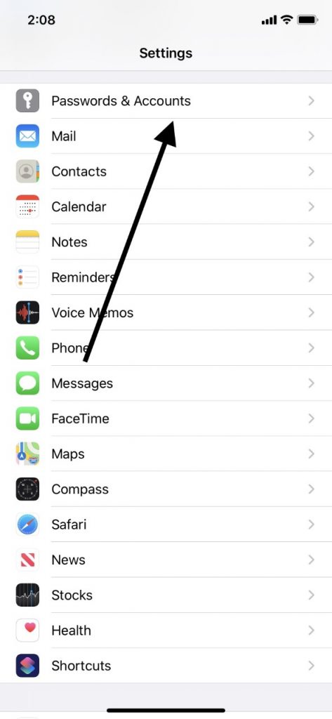 如果你去設定,你會看到帳號和密碼作為選項之一。點擊它。您現在必須選擇與您的設備同步的每個帳戶。