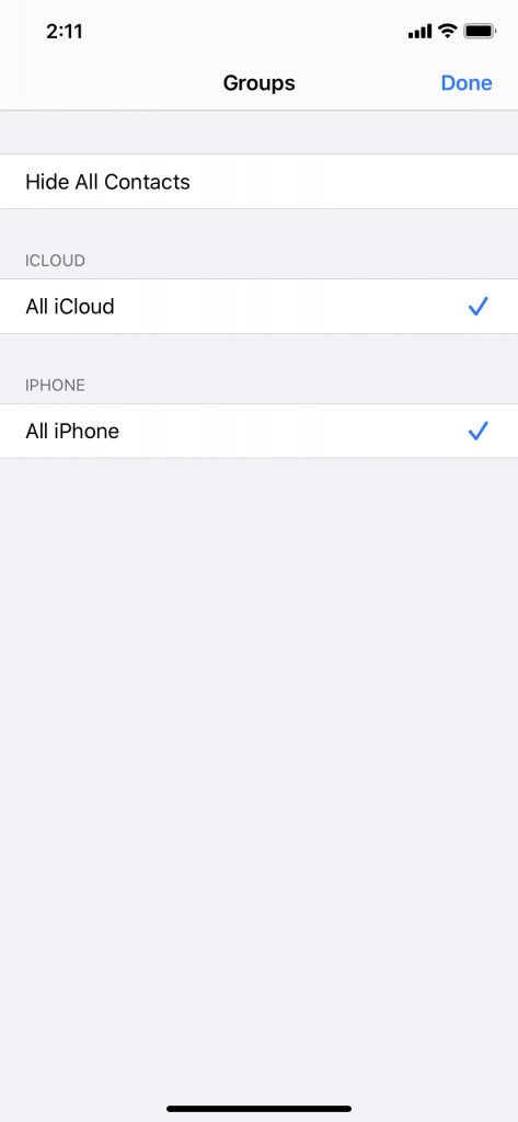 這是可能解決該問題的另一個技巧。去你的聯繫方式應用程式.在“聯繫人”頁面頂部,點擊顯示的位置團體。