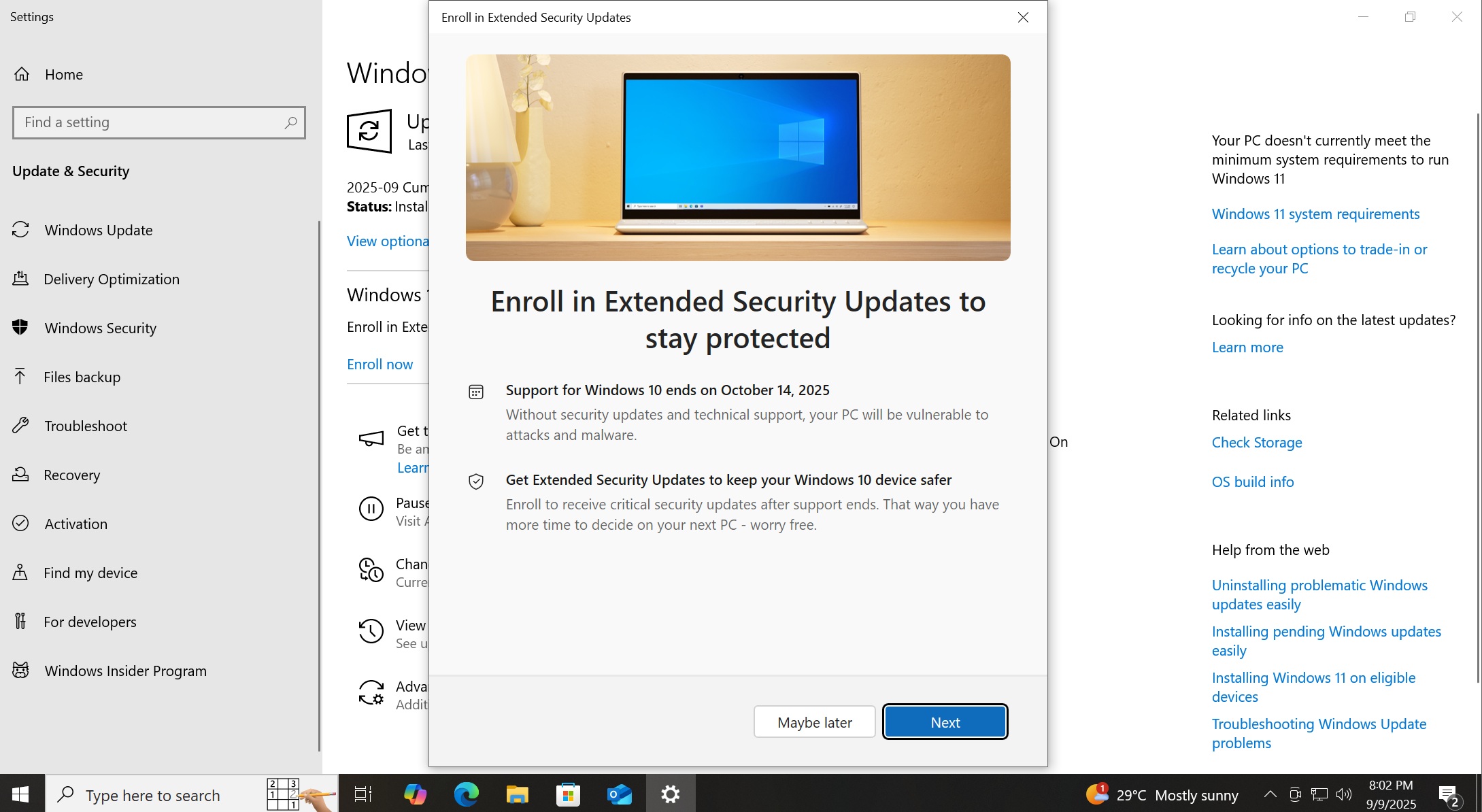 - 最後,點擊完畢,並且您的電腦將有資格獲得安全更新,直到 2026 年 10 月 13 日。