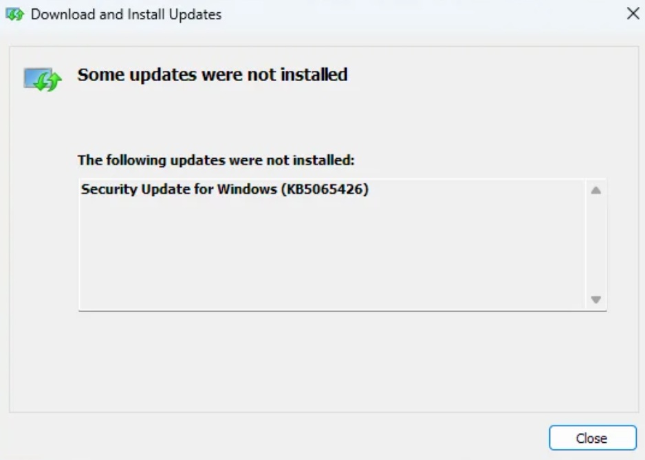 “我使用了 SFC 和 DISM 命令來確保沒有損壞的文件。Windows 11 KB5065426 的安裝總是失敗,我在 Windows Update 上看到‘全部重試’按鈕。我點擊該按鈕,下載再次開始,但失敗了,”一位用戶指出。 “我下載了該軟件包並嘗試手動安裝......安裝失敗,但我沒有收到錯誤。安裝包剛剛完成,並顯示“未安裝”消息。
