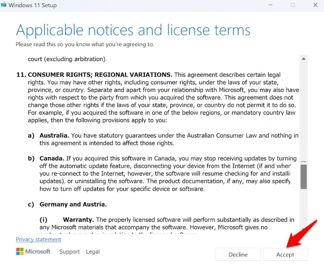 首先,從 Microsoft 的下載門戶下載並安裝媒體創建工具,但請記住,您選擇了“升級此電腦”,並且選擇了保留個人文件或圖片的開關。