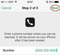 步驟5。輸入電話號碼,然後單擊“下一步”。刪除數據後,該手機將在設備的鎖定屏幕上顯示,以便有能夠與您聯繫的人。