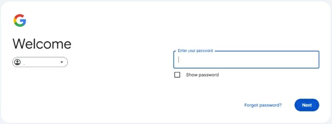 3. 單擊忘記密碼?選項並按照 Google 的提示驗證您的身份。選項可能包括: