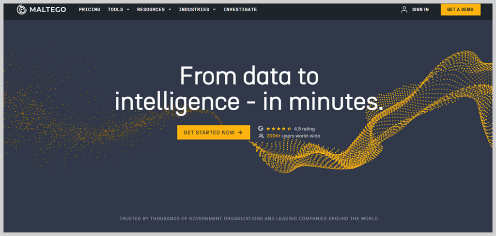 Maltego 支持暗網的跨平台監控。它為大型調查團隊提供協作工作空間。該工具可通過第三方轉換進行高度定制,使其成為最通用的 OSINT 工具之一。
