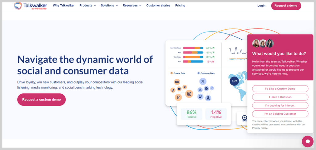 Talkwalker 提供業界領先的網絡監控工具。 2024年,Hootsuite 收購 Talkwalker。該平台非常適合安全團隊和公關機構,因為它可以掃描數百萬個來源,尋找新出現的威脅。和覆蓋超過 1.5 億個網站, 行者支持超過 187 種語言.