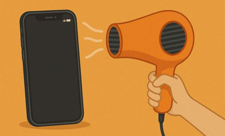 使用吹風機,調至涼爽、低溫並向耳機或閃電端口吹氣一分鐘。這可以針對隱藏的濕氣,尤其是在 Face ID 傳感器附近。之後讓手機完全乾燥,然後再嘗試恢復。