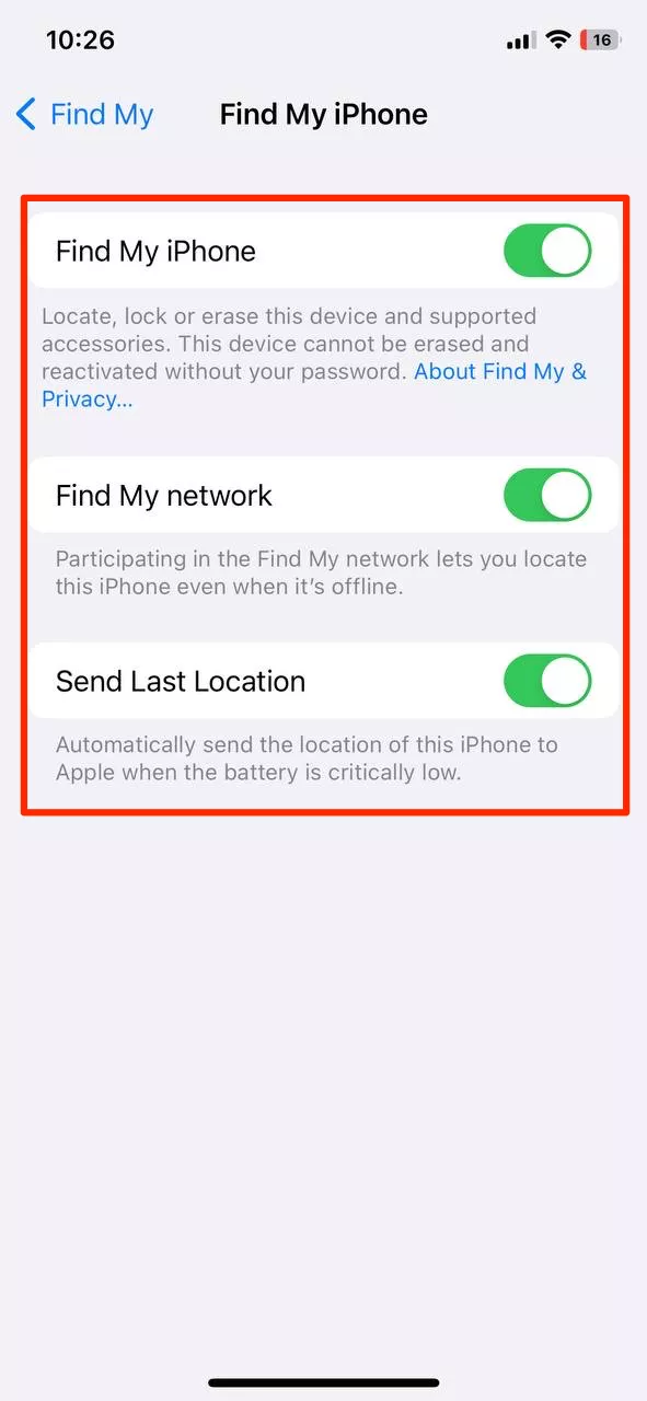 如果您丟失了 iPhone 或有人偷了它,這一基本功能將是您的生命線。查找我的 iPhone允許您從其他設備或網絡瀏覽器找到手機的位置,並刪除所有數據,以免其落入壞人之手。因此,請確保您打開“查找我的 iPhone”,尤其是在出門在外時。