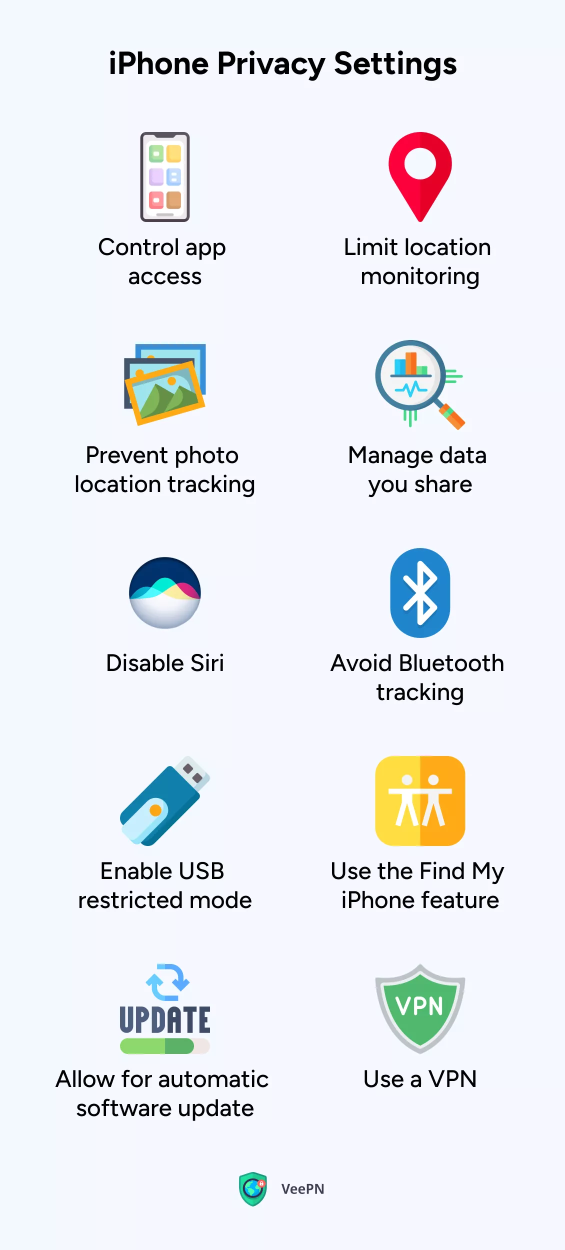 iOS 通常被認為是私有且安全的操作系統。 iPhone 擁有許多不錯的注重隱私的功能,從應用程序沙箱到用戶可以調整以保護其個人信息免遭窺探的多種設置。儘管如此,iPhone 並不能提供終極隱私。特別是,它無法保護您免受各種在線威脅,從網絡釣魚到惡意軟件和黑客攻擊。這就是為什麼值得在 iPhone 上安裝像 VeePN 這樣的可靠 VPN。查看這篇文章了解更多詳細信息。