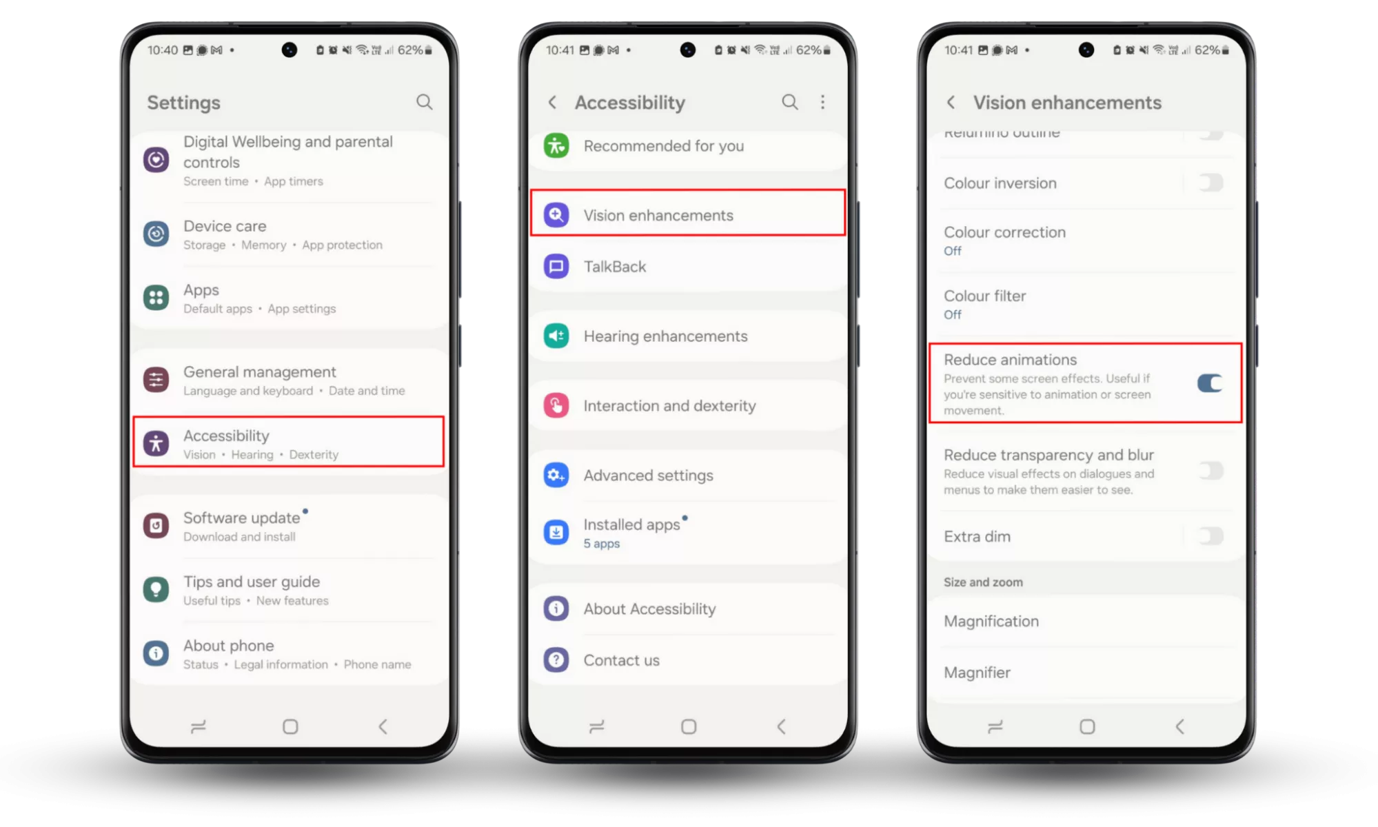 步驟 1-4:打開“設置”>“輔助功能”>“視覺增強”>“減少動畫”。